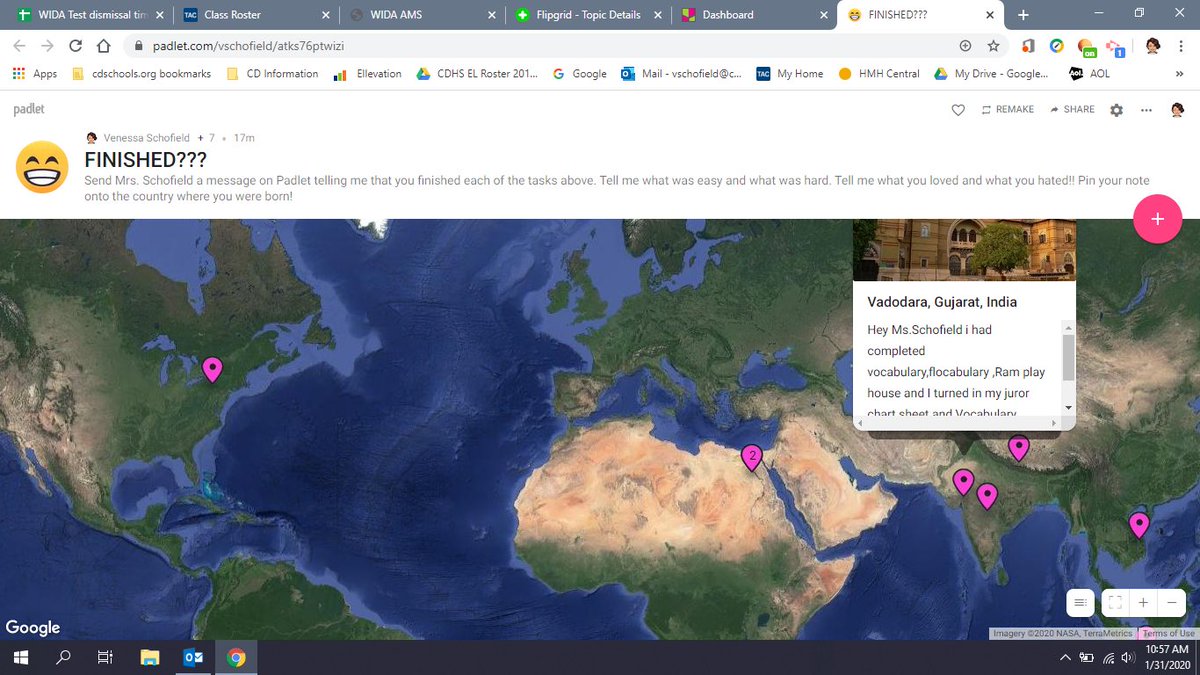 After a week of WIDA testing and being out of the classroom I had kids post their progress on a Padlet. Used the map version so they pinned their update on their place of birth!