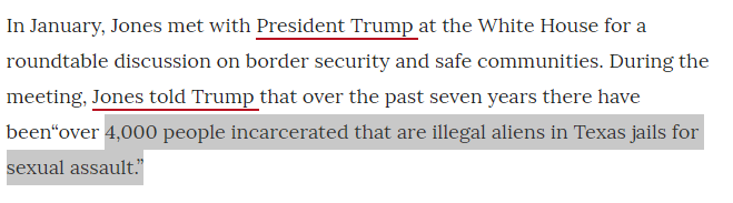 character met with #Trump at the#WhiteHouse and was BRAGGING to him how he had helped JAIL 4,000 illegal aliens for sexual assault.#GOPHypocrisy folks!!pic.twitter.com/IwxFfdVqxP