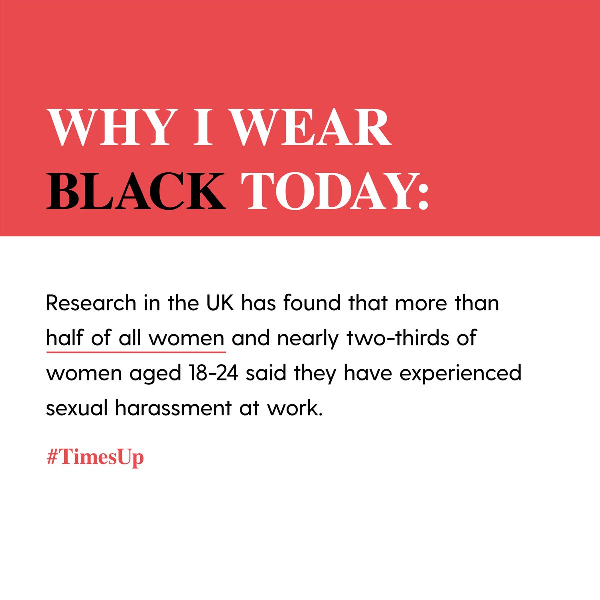 #TIMESUP on workplace harassment, abuse and inequality. We wear black to stand in solidarity with women of all industries, from the#BAFTAS & beyond, the message remains the same: we stand for safety and equity in the workplace#TIMESUP#WHYWEWEARBLACK pic.twitter.com/tFVAVfJQ3s