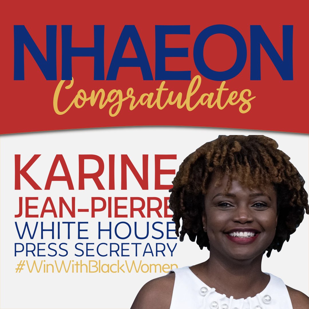NHAEON congratulates Karine Jean- Pierre as the new White House Press Secretary. Born to Haitian parents, Jean-Pierre has a long history of serving the American people.