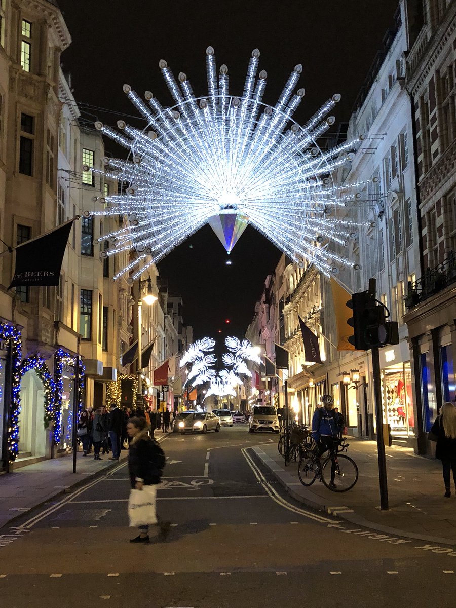 #London last year at this time. If the#winterwunderland at Hyde park is going on try and check it out. It was amazing. And look at that we have the same photos of the lights ornaments on the street.