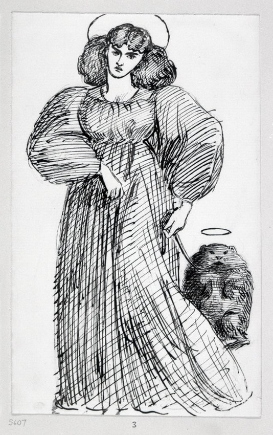 #WombatWednesday From another poem by Christina Rossetti: "O Uommibatto / Agil, giocondo, / Che ti sei fatto Liscio e rotondo!..." with drawing by DG Rossetti of Jane Morris taking Top the Wombat out for a walk. A man who asked "Can peace be gained, until I clasp my wombat!"? pic.twitter.com/wTTdrByYDu