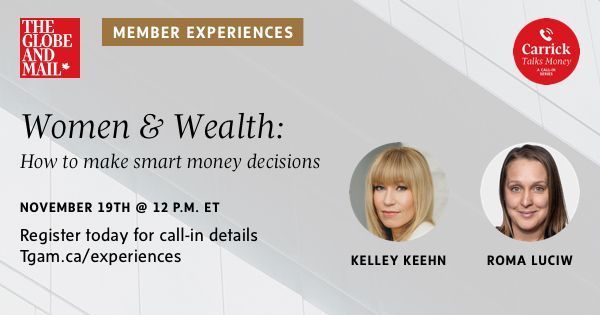 @RomaLuciw and I will be doing a live Women & Wealth call-in with@globeandmail for#FLM2019! Subscribers can register via the Members Benefits site. Get your spot