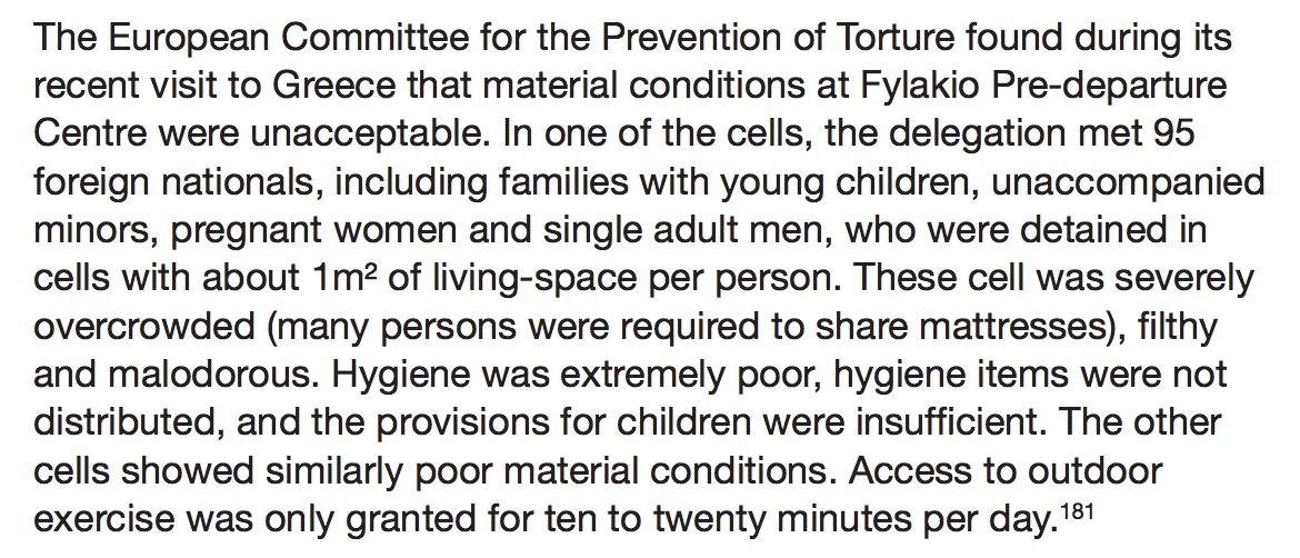 #Greece: During its recent visit, the European Committee for the Prevention of Torture found detainees, incl pregnant women, living in filthy cells with just 1m2 of living space per person. Many were required to share mattresses. http://ow.ly/tqlR30nXq2B#IWD2019#WomenInDetention pic.twitter.com/oBSqp672vO