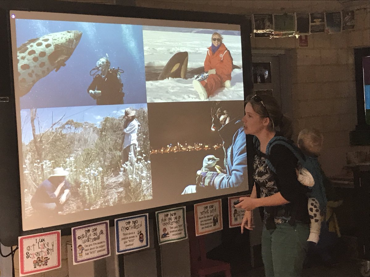 Highlight of my week: talking about being a spider ecologist for a girls STEM club with a baby on my back