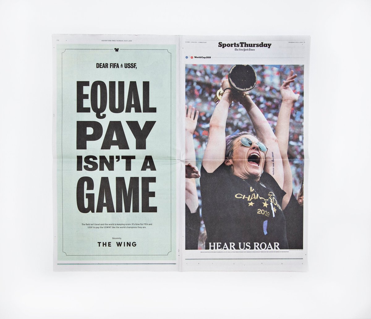 @the_wing took out an ad in today's@nytimes in support of our World Champs@USWNT and their fight for equal pay.