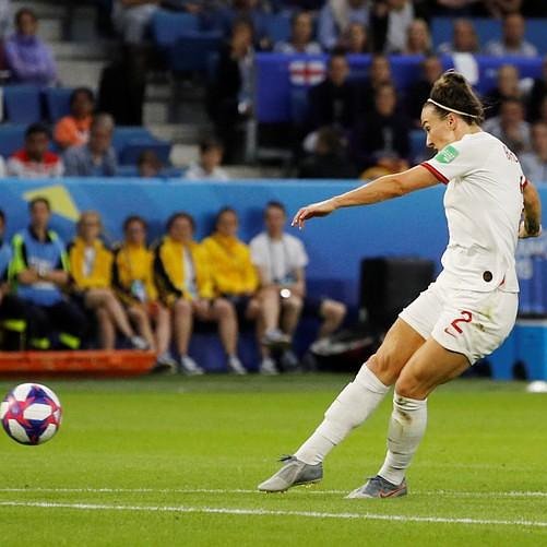 Lucy Bronze's thunderbolt from the edge of the area makes it 3-0 to England as they beat Norway in their World Cup quarter-final in Le Havre. Remade as a Subbuteo figure.