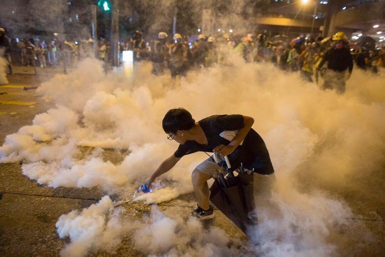 #WongTaiSin: A gearless young man, supposedly a Wong Tai Sin resident, uses bottled water to extinguish ignited tear gas. This Hong Kong. Tear gas can cause no fear any more.#ExtraditionLaw#antiELAB Photo from@mingpaocompic.twitter.com/0GxpeHgSwa