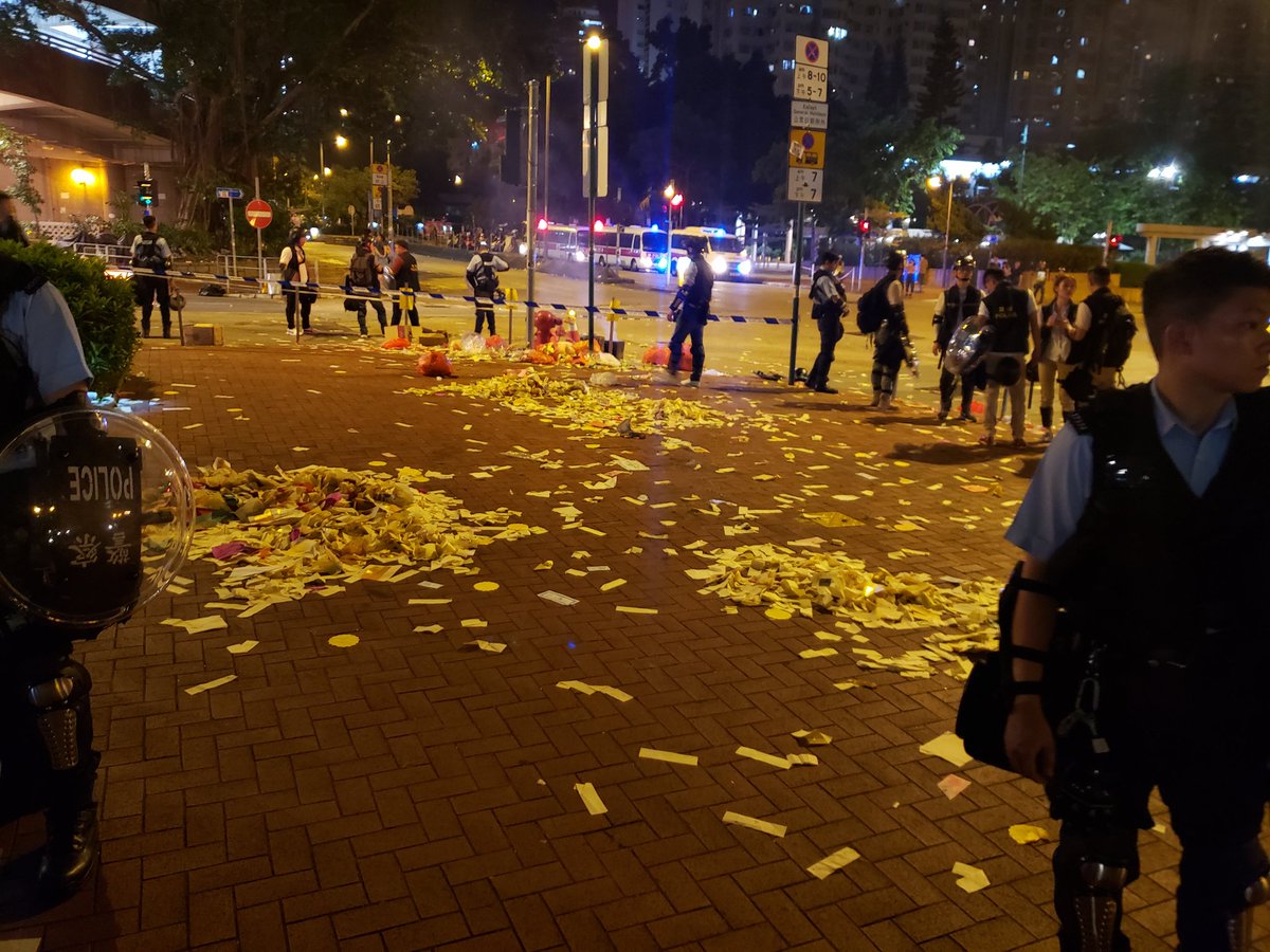 Police have cordoned off this area which the main group of "paper offering" protesters used for most of tonite to collect evidence