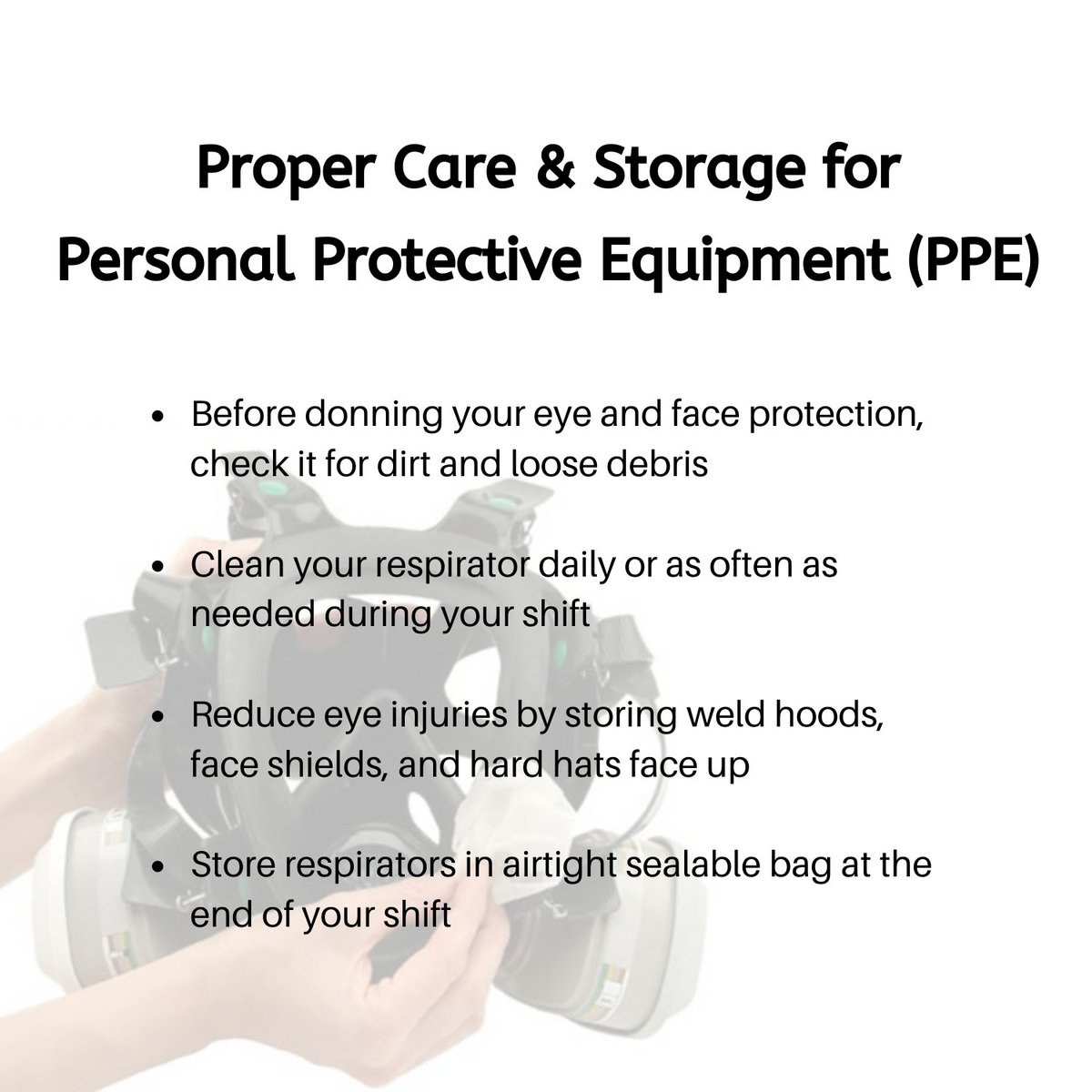 This month, our safety topic focuses on proper care and storage of personal protective equipment. Check-out these helpful tips to keep you protected!