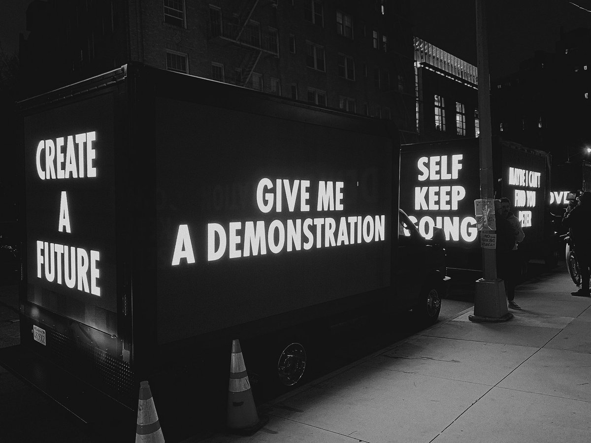 DON’T GIVE ME A MEMORIAL IF I DIE / GIVE ME A DEMONSTRATION art by jenny holzer for