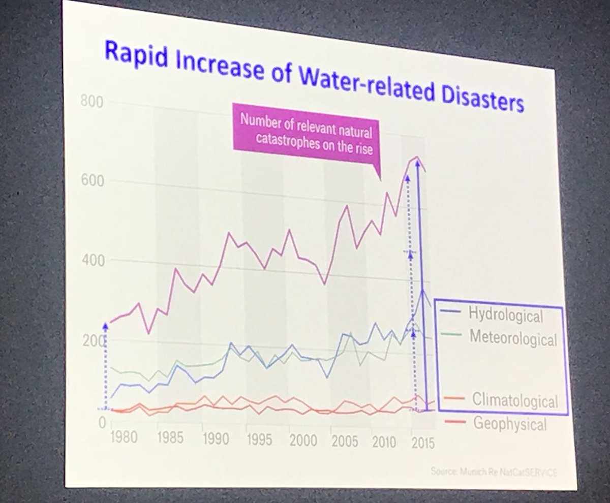 #WorldWaterCongress as Toshio Koike (Int. Centre for Water Harzard & Risk) shows how water related disasters have trebled since the ‘80s while others have remained steady#floodaware#IWAcongresspic.twitter.com/jCKdUKdZqV