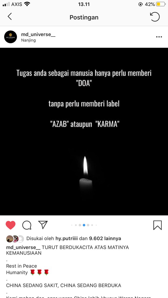 saya sebagai mahasiswi keperawatan merasa respect atas pekerjaan yg sangat mulia membantu siapapun untuk sembuh, semoga tenaga medis di china lebih tepatnya di wuhan selalu diberi kesehatan dan kelancaran untuk menjalankan tugasnya