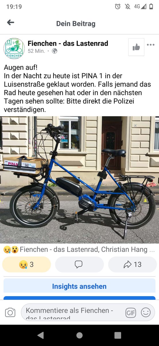 #StolenBike in#Wuppertal Ein Rad aus der Fienchen Flotte, also ein freies (Lasten)Rad ist letzte Nacht geklaut worden. PINA 1 Hinweis: gibt noch fünf weitere pic.twitter.com/6JX2SDp0Ns