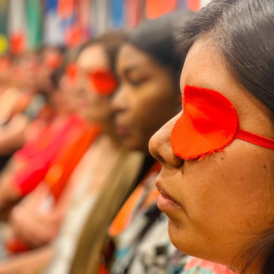 #XIVConferenciaMujer esperamos a la ministra de la Mujer y la Equidad de Género de Chile con los ojos tapados en apoyo a los cientos de personas mutiladas, violadas, asesinadas y desaparecidas por las fuerzas militares. ¡NO MÁS VIOLACIÓN DE DERECHOS HUMANOS EN CHILE! pic.twitter.com/41JwJc6L4v