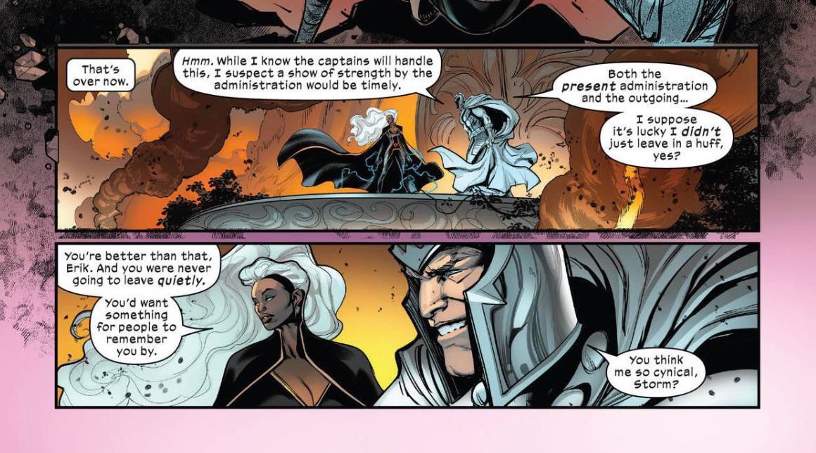 Magneto and Storm working in unison has to be the most satisfying thing captured in a panel. The fact that both of them are quite capable of taking out the monster by their lonesome but made an example of mutant community and teamwork. We have to stan!!