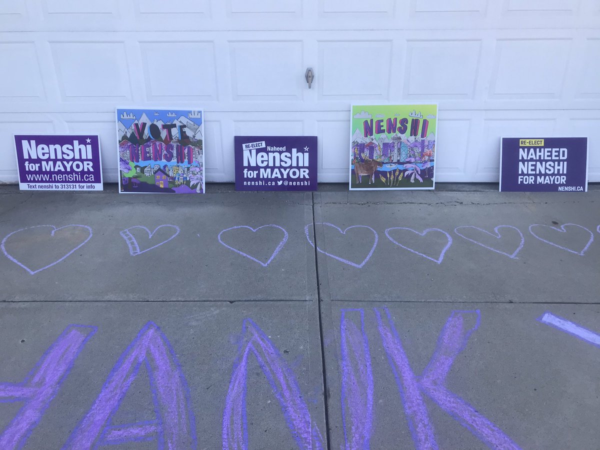 @nenshi’s last Calgary City Council meeting. We thought we would go and chalk his own driveway before he woke up!
