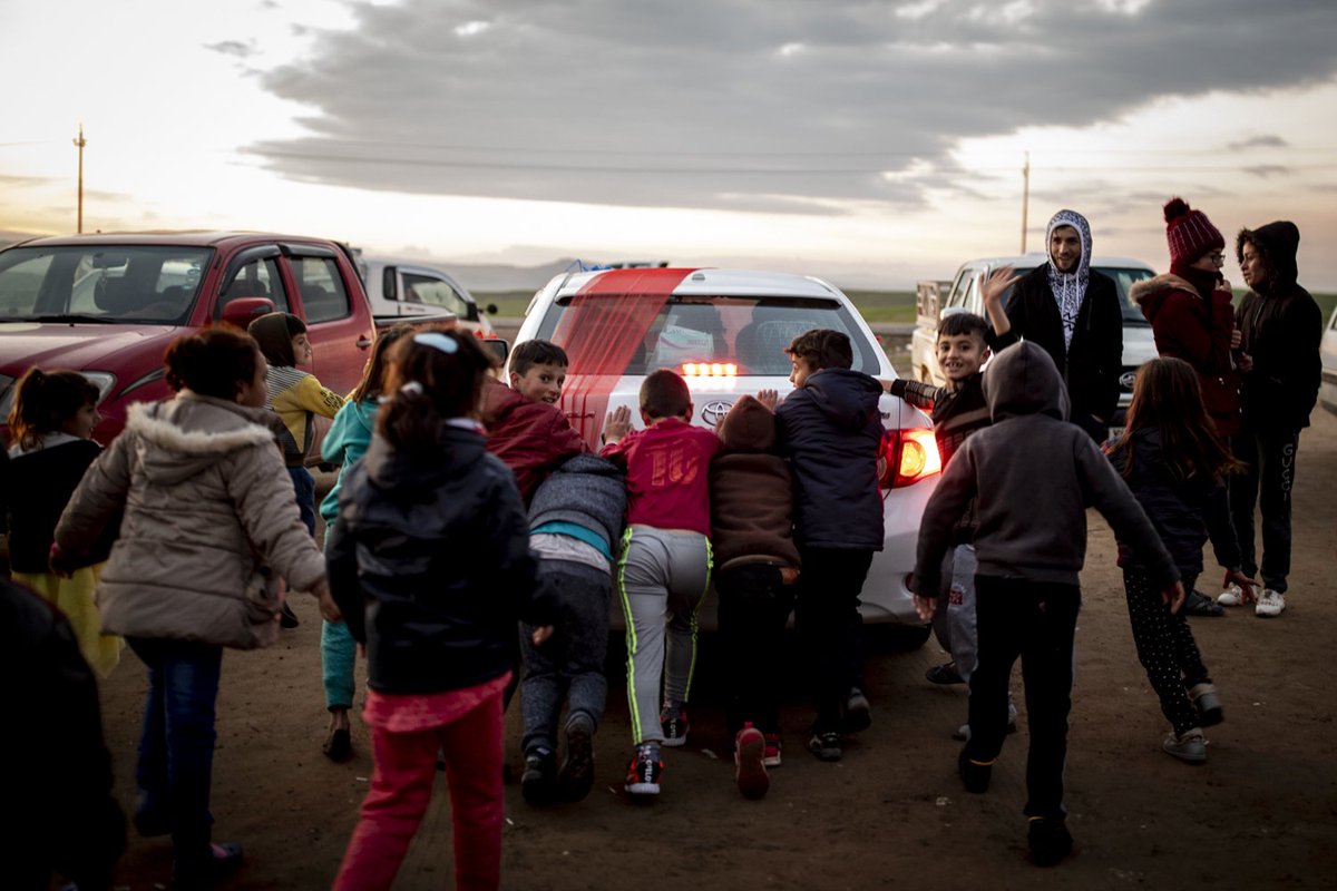 #yazidi bride and groom leave their#wedding party outside the bajad kandala#idp#displacement camp in#iraqi#kurdistan 12.29.2018pic.twitter.com/dsUGEHr0sL