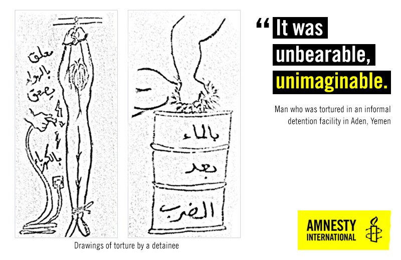 #UAE forces have arbitrarily detained + tortured detainees in#Yemeni +#Emirati facilities, subjecting them to beatings, sexual abuse + electric shocks: http://amn.st/6006Do42Q pic.twitter.com/n3M5HXzH0Z