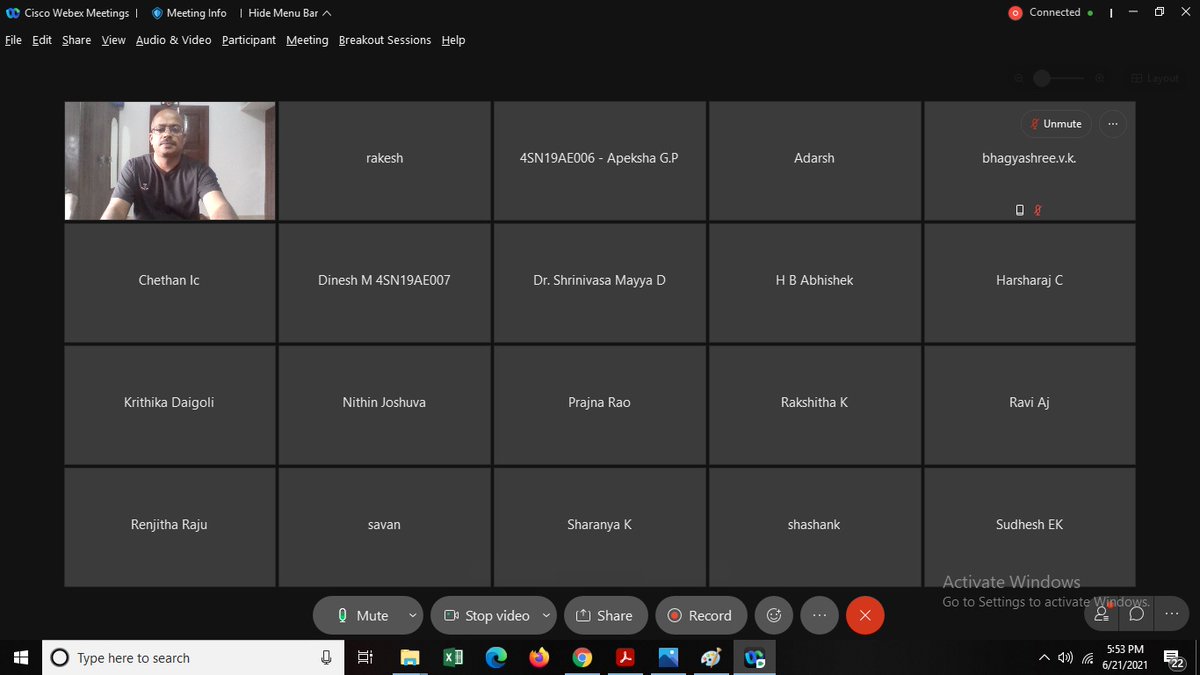NSS UNIT CELEBRATED INTERNATIONAL YOGA DAY ON 21/06/21 IN ONLINE PLATFORM .STUDENTS AND STAFFS OF SIT PARTICIPATED AND PERFORMED YOGA ASANAS FROM THEIR HOME.