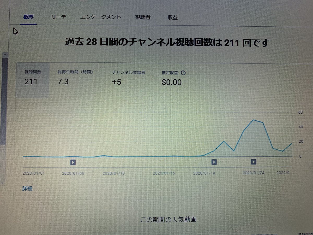一度視聴数がドーンと落ちたけど、動画のタイトル変えたらなんとか持ち直した!