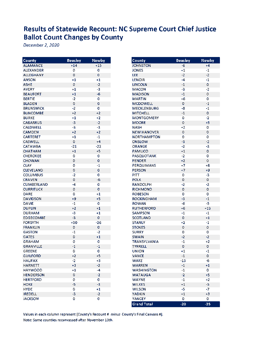 RELEASE: Counties Complete Recount in Supreme Court Race; Newby Leads by 401 Votes Read online: https://bit.ly/3g0vCSR