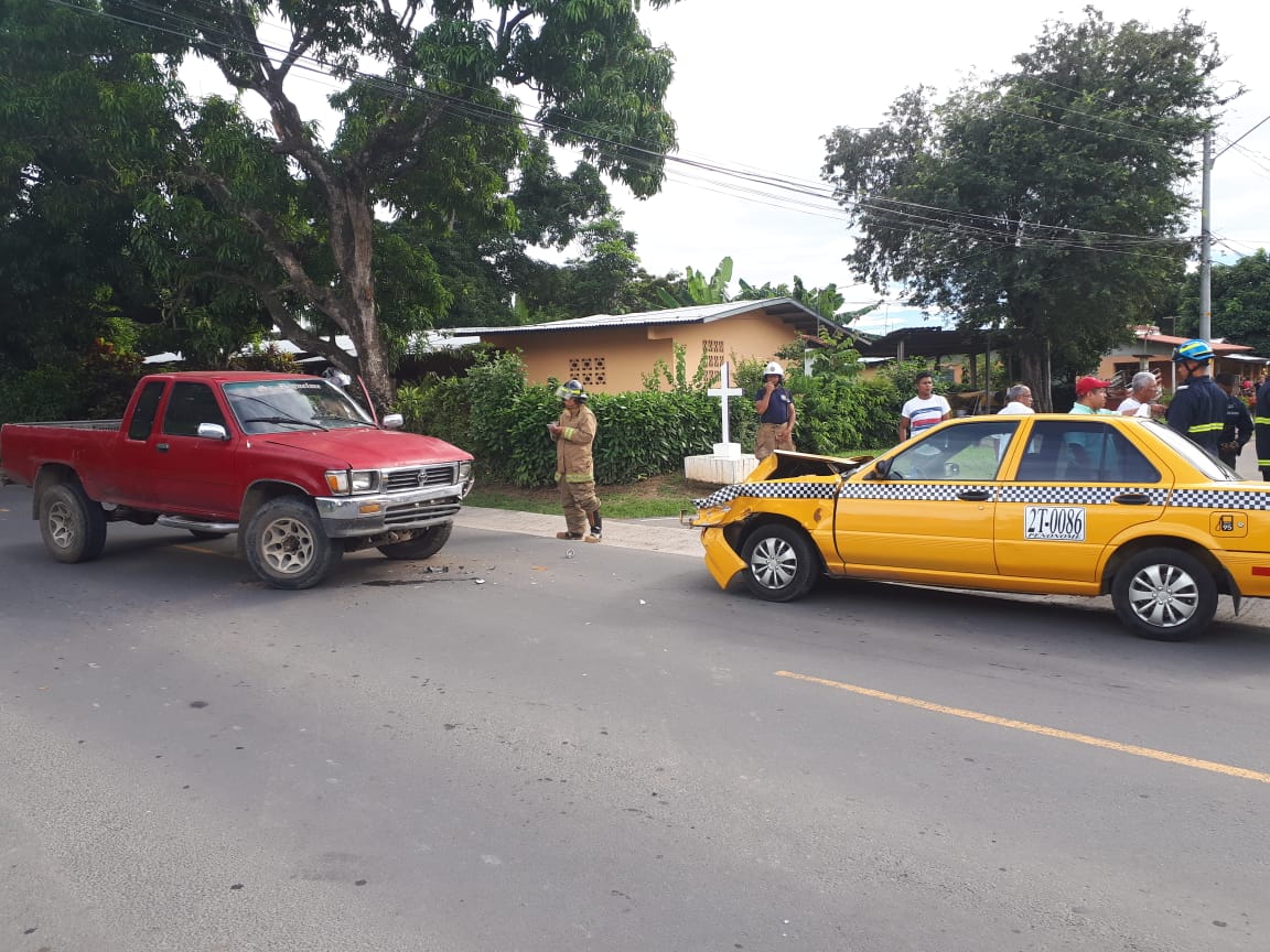 Se registra colisión entre sedán y camioneta en Bda. Residencial Miraflores en Penonomé. Bomberos en el lugar. Paramédicos de