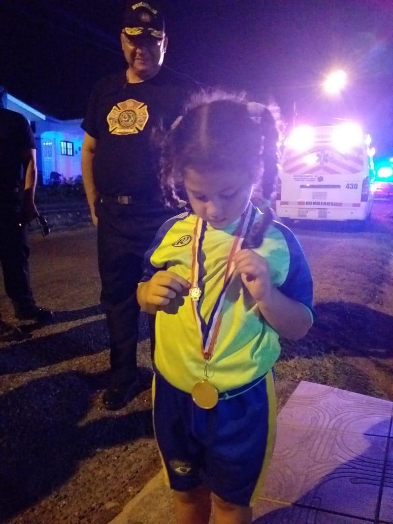 #Coclé Luego de una tarde intensa de labor, nos aborda la niña Mía Angeline Echenique de 4 años de la Esc. Atlético de Penonomé y nos daba las gracias, ademas ella quiere mucho a los bomberos y nos hace saber que hoy se ganó una medalla, le obsequiamos un pin de la#ZRCoclé pic.twitter.com/mYyT9T4IBT