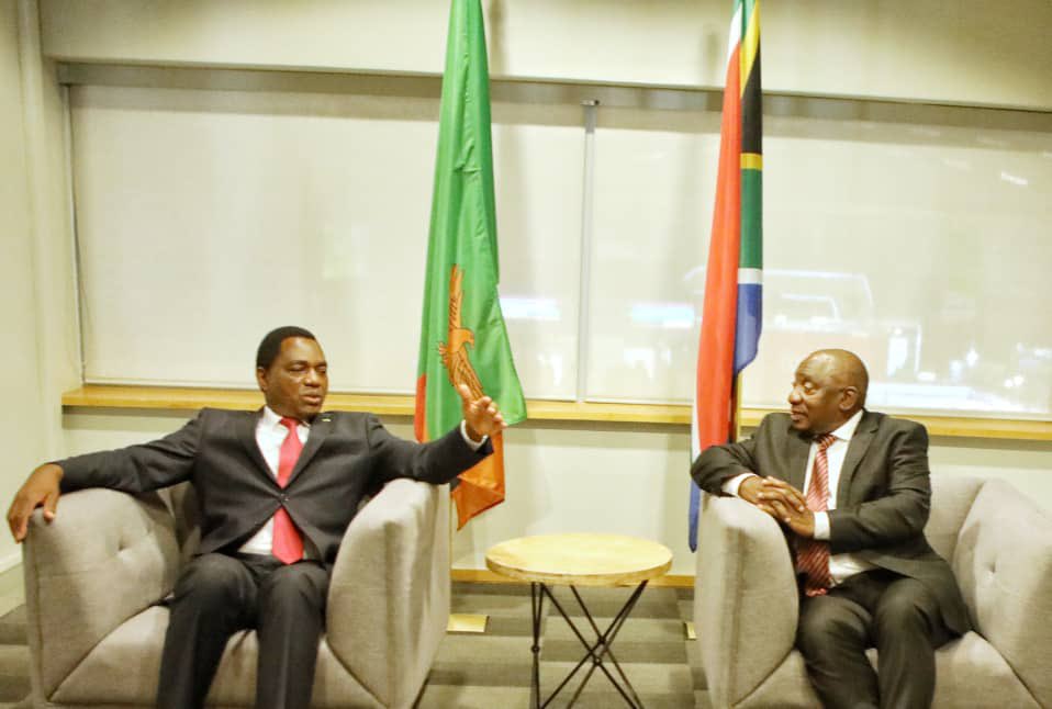 #SouthAfrica President H.E@CyrilRamaphosa today. Discussion included need to enhance trade between our 2 nations and the region before looking further afield for investment and development.#MI2022#aBetterFuture#Zambia pic.twitter.com/A7rOYp7vmN