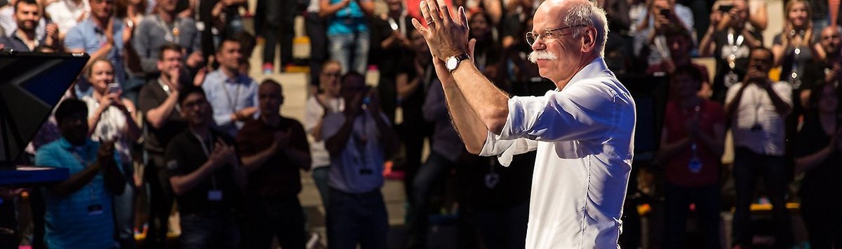Dieter Zetsche takes the stage at his last Annual Meeting as Daimler CEO.