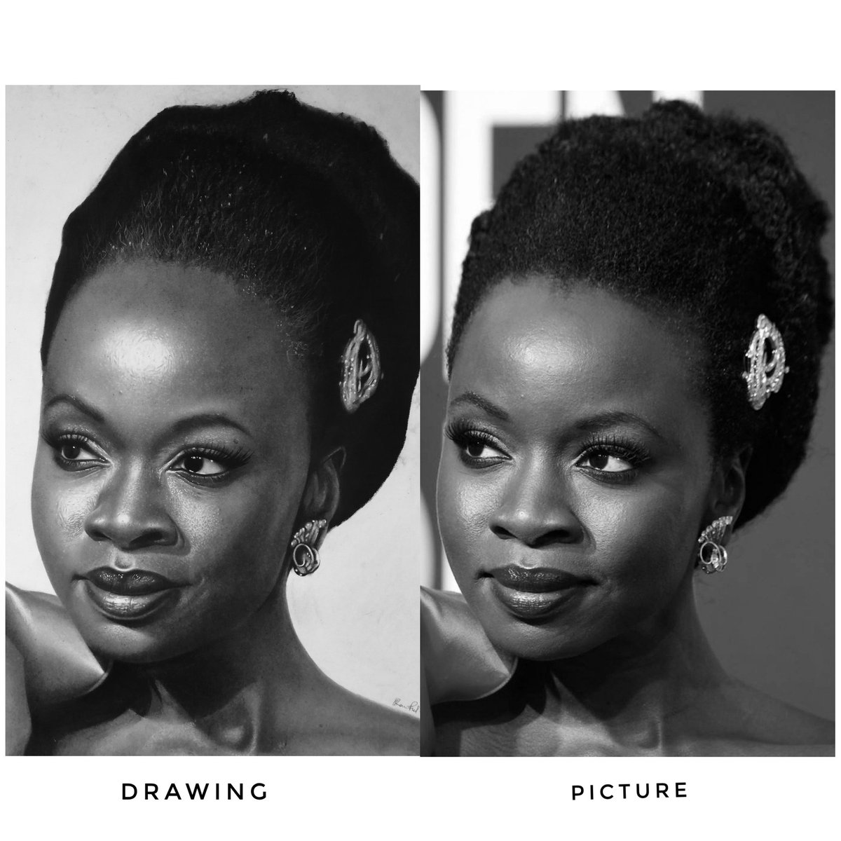 @DanaiGurira potrait and the reference.. I know its not exact, but given the little time I had l think l did some justice.. Wat are your thoughts? PLEASE RETWEET