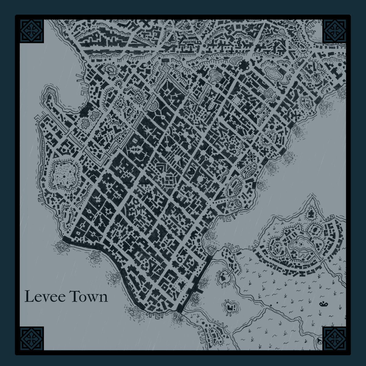 Move quickly w/ purpose along the dreary, paranoid streets of Levee Town, a Rainy City district of stock brick rowhouses, of water pumps & wheelhouses, of volunteer watchmen, & of unions, sacred brotherhoods, & cultic violence. Watch your back, & know the secret signs!