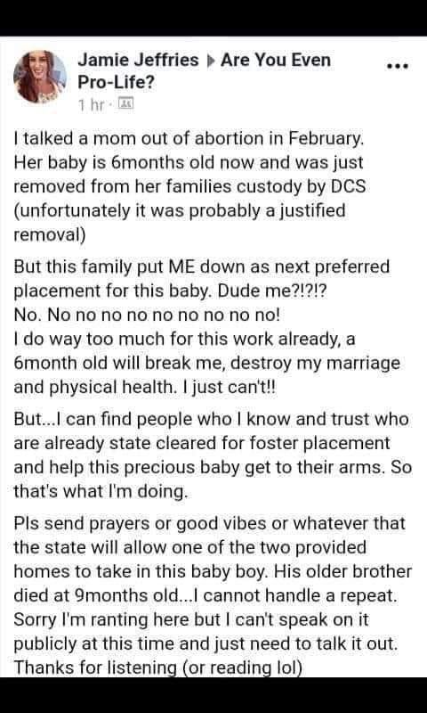 It’s funny when Pro-Life people think it’s their duty to save unborn children. I get where they come from but that’s not your job. It’s the mothers decision and her’s only. Mind your own business and go home.