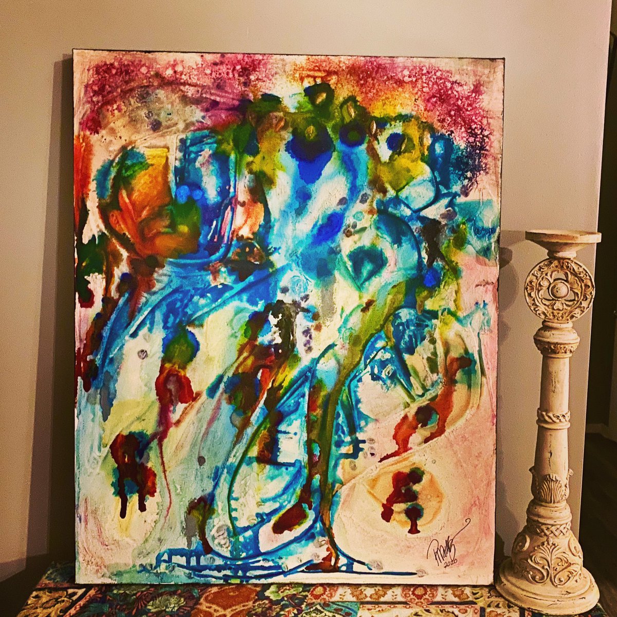This is the pic I was looking for. So, this is mixed media, 5’x4’.........in progress. I gotta pickup the pace.