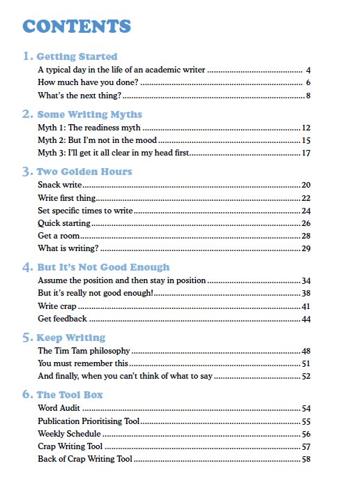 The contents page from: Turbocharge Your Writing - How to become a prolific academic writer. http://www.ithinkwell.com.au/bookshop/turbocharge-your-writing …