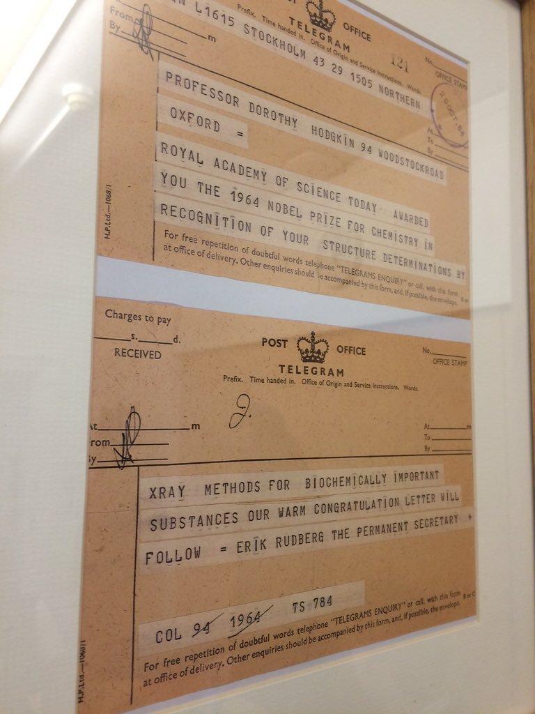 #AdaLovelaceDay19 we are remembering when Dorothy Hodgkin received the telegram telling her she had won the Nobel Prize for Chemistry. pic.twitter.com/SOD4q0X30u