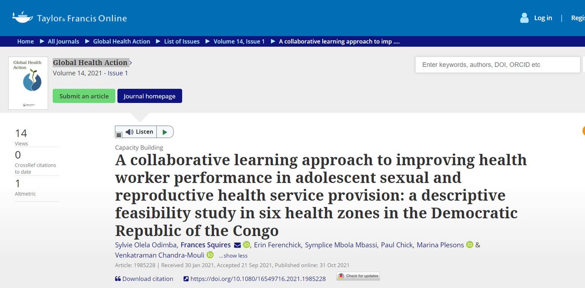 @WHO,@HRPresearch and partners suggest that collaborative learning in#adolescent health services is feasible, acceptable, & inexpensive. How? See this inspiring capacity building study in the Democratic Republic of the Congo: https://bit.ly/3q3B9Pm pic.twitter.com/w7X3r1lJ0o