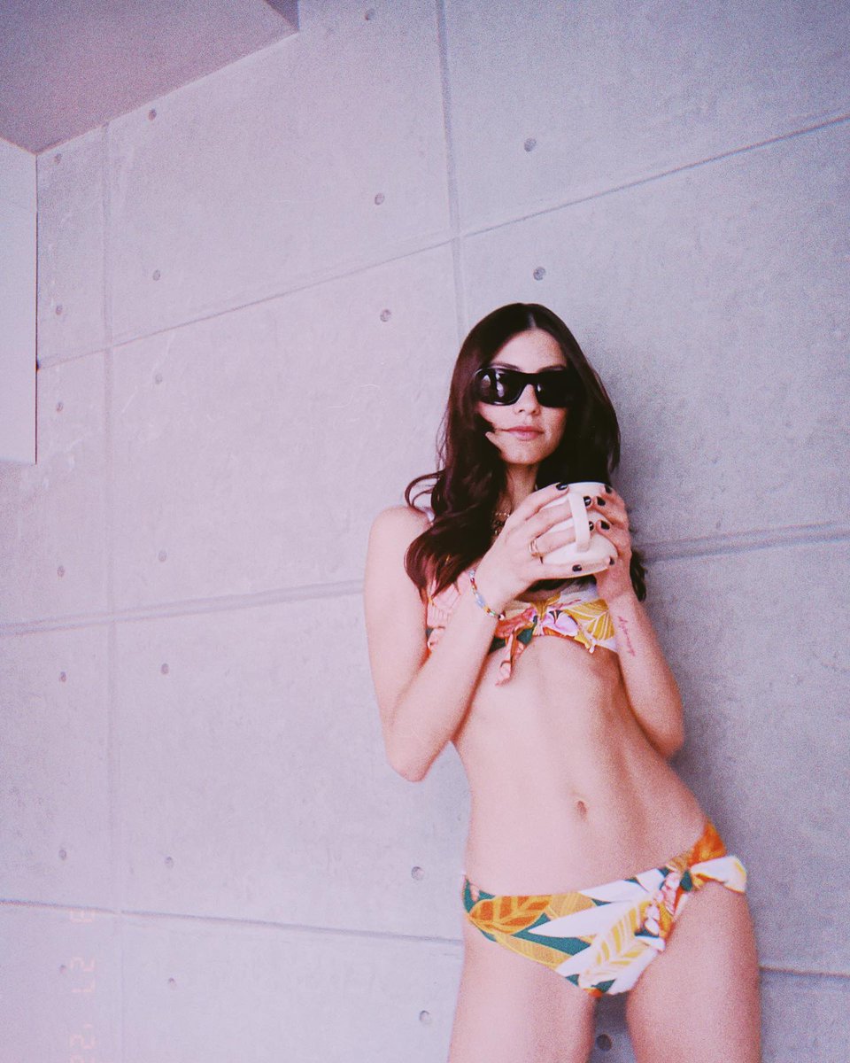 : Me here in my little house trying on all the swimsuits from @aerie_mx and their new release, we love them, we love their colors, their texture, their designs and I love that they are forcing me to invent another trip to the beach
