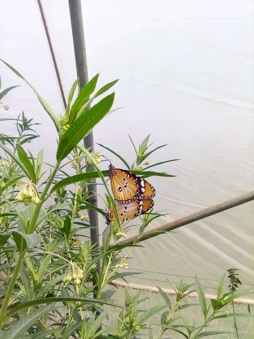 #Akagera#Community Centre to see our#Butterfly Project. 2 species can be found in the greenhouse:#AfricanQueen &#Diadem. They produced eggs and the first#caterpillars hatched, some have already transitioned to the#pupa stage!#OurAkagera#conservation#educationpic.twitter.com/yie02FXRA4