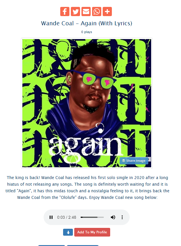 #WandeCoal's new single#Again on Naijapals@wandecoalpic.twitter.com/LZn80cBqiv