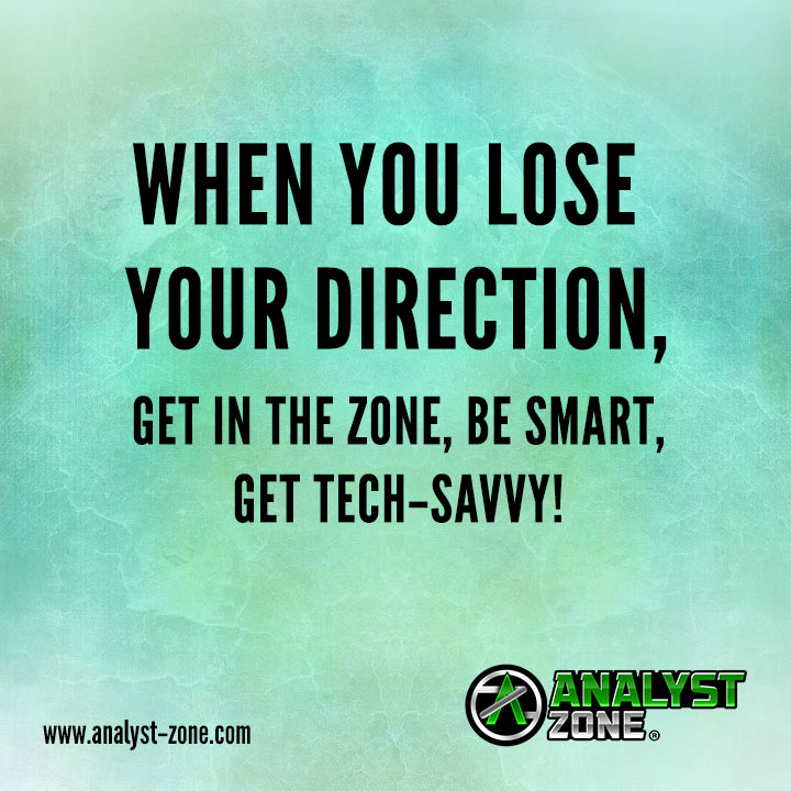 When You Lose Your Direction, Get In The Zone, Be Smart, Get Tech-Savvy! http://www.analyst-zone.com