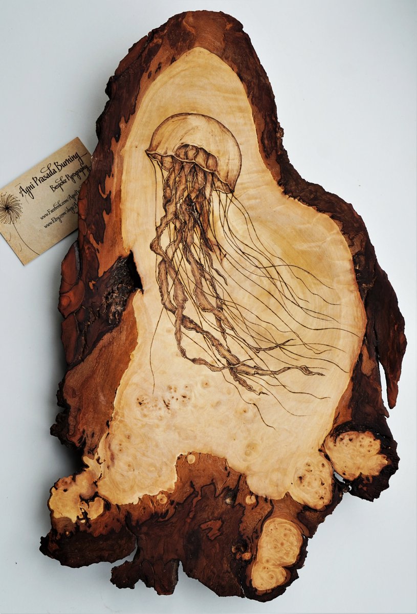 #agniprasadaburning#handcrafteduniquelycommunity#artistsontwitter#enterprisehour#buyonlinehour#jellyfish#pyrography#SmallBiz#MondayMadness pic.twitter.com/eI6DmTI0KJ