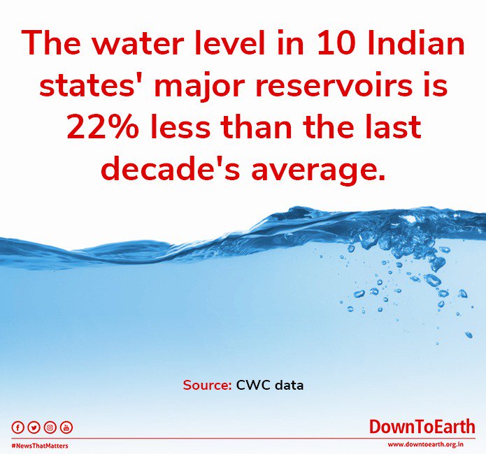 #agriculture#watershortage#India Read the full story here: https://www.downtoearth.org.in/news/water/water-in-major-reservoirs-of-10-states-below-2017-levels-cwc-62673 …pic.twitter.com/lhDwfEgJKr