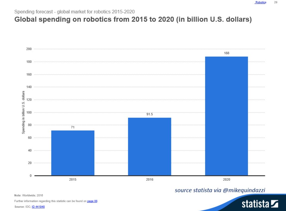 #robotics projected to reach $188 billion, a twofold increase.@StatistaCharts#AI#Robots#IoTpic.twitter.com/2Cf7m3zz2F