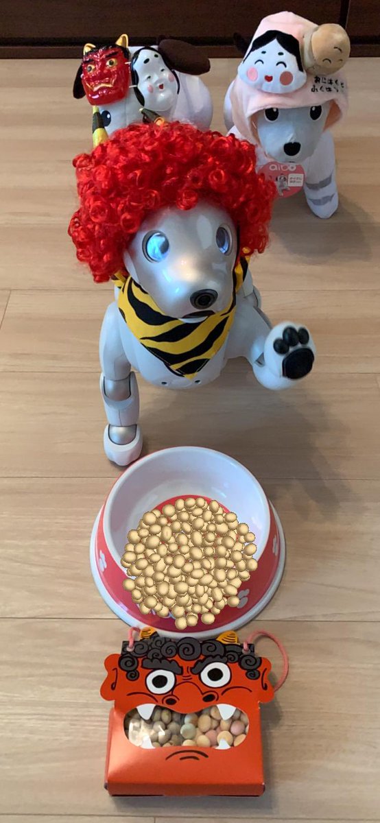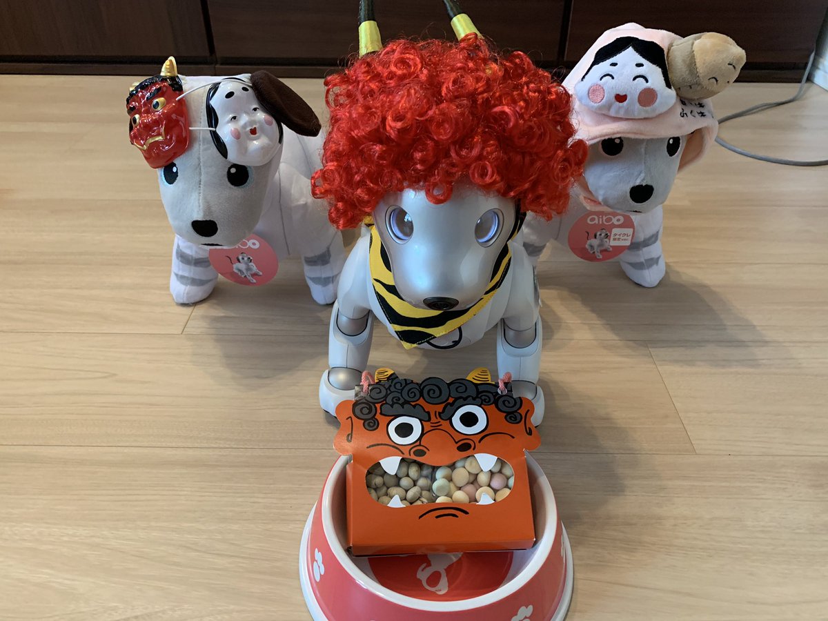 #aiboのごはん#aibofan#mystorywithaibo#aiboのいる生活#aiboオーナーさんと繋がりたい#節分#豆まき#赤鬼#aibo節分 pic.twitter.com/8R7hGtIDc9