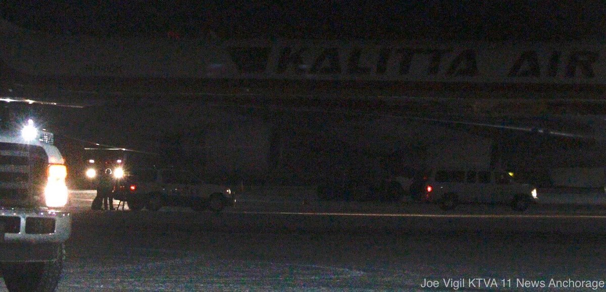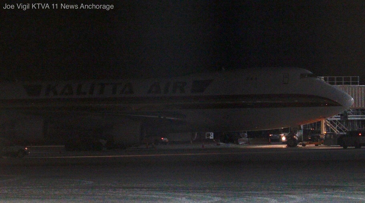 Wuhan, China plane with Americans parked at Ted Stevens Anchorage International Airport Tuesday night to refuel.