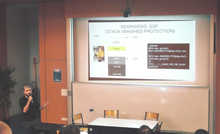 #amusec Intervention de Lucas DI MARTINO@DIMARTINOLucas à propos de la sécurité des binaires. Prestation remarquable et très remarquée tant sur la maîtrise technique que la clarté des propos !! pic.twitter.com/crECQxU0dR