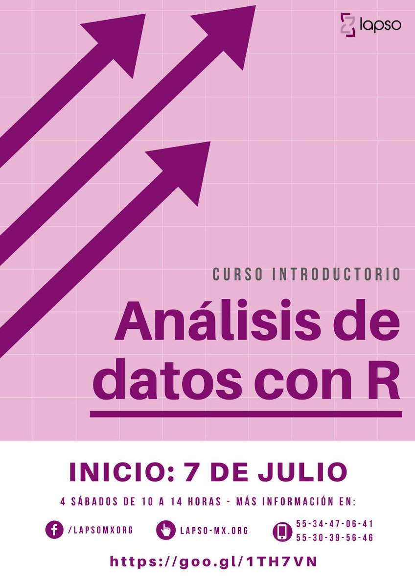 #AnalisisDeDatos con#R. Inicio: 7 de julio. Puedes encontrar la info en: https://goo.gl/1TH7VN https://twitter.com/lapso_mx/status/1007281822894624769/photo/1pic.twitter.com/cztzEUC4Y7 pic.twitter.com/gtNOWiQXRC