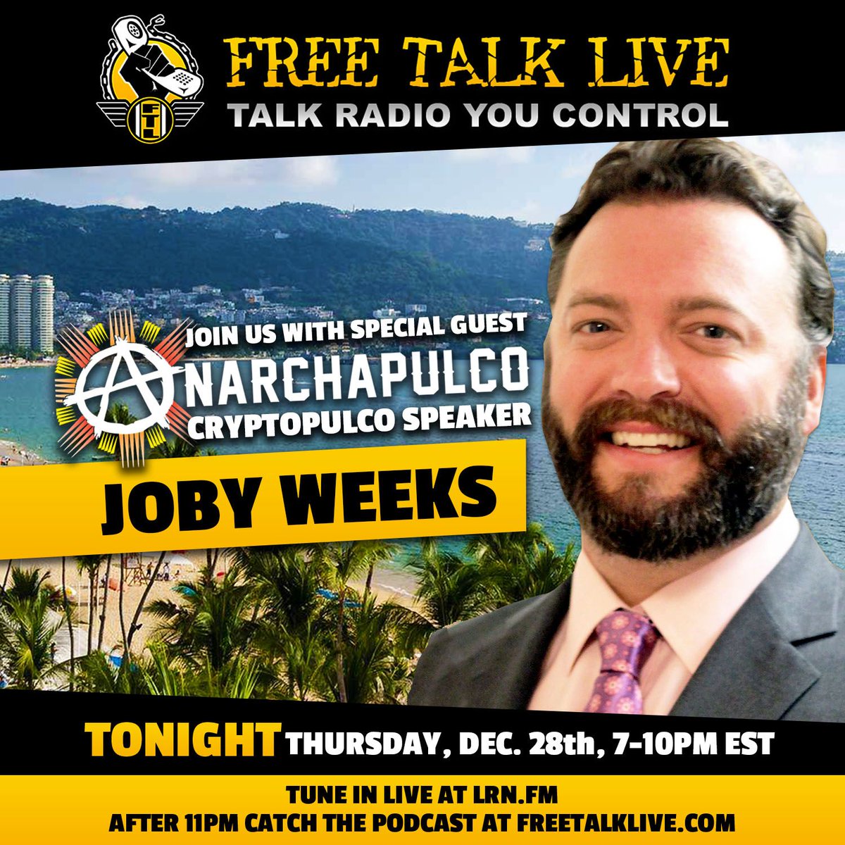 @FreeTalkLive Tune in live from 7-10PM EST at http://lrn.fm or download the archives later at http://bit.ly/2E61l4W#anarchapulco#bitcoin#jobyweeks#crypto#activism#anarchismpic.twitter.com/Vzx2KT0QFD