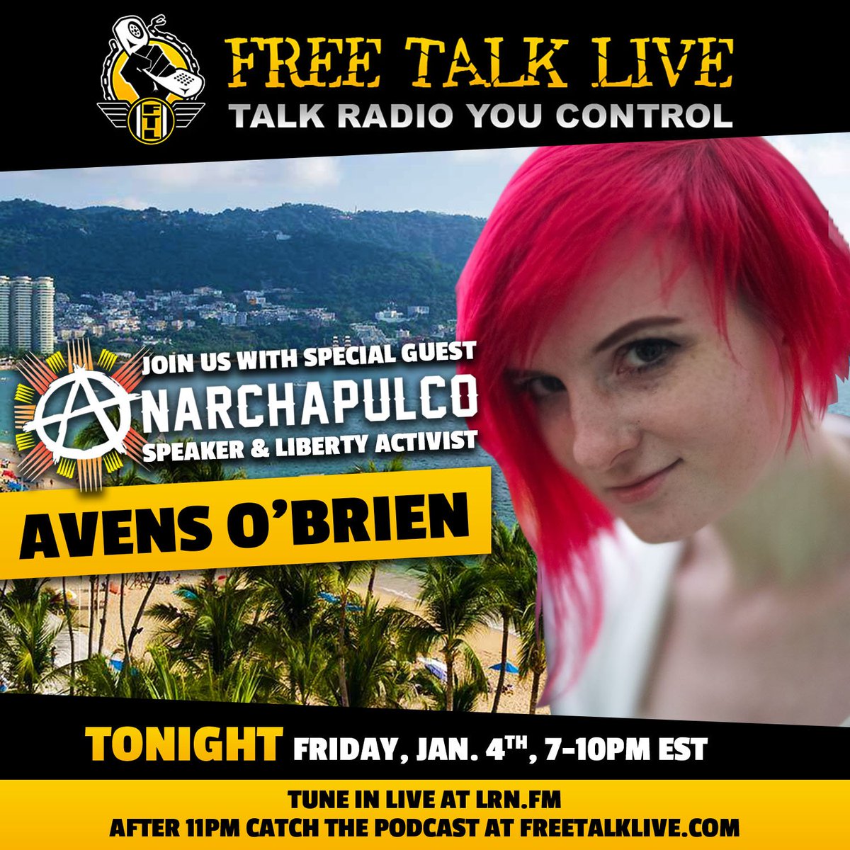 @avensobrien ) tonight on@FreeTalkLive! Tune in live at http://lrn.fm from 7PM-10PM EST, or download the link later at https://freetalklive.com/archives#anarchapulco#freetalklive#anarchy#peace#cannabispic.twitter.com/2kvfNnyDD5